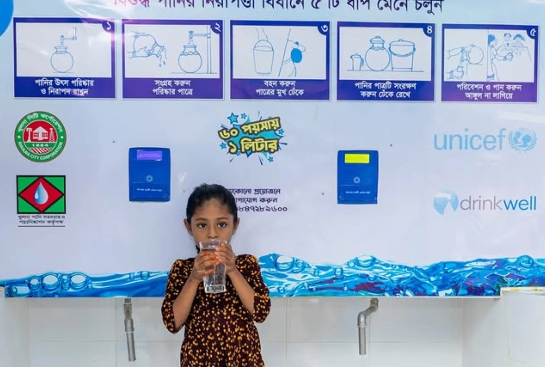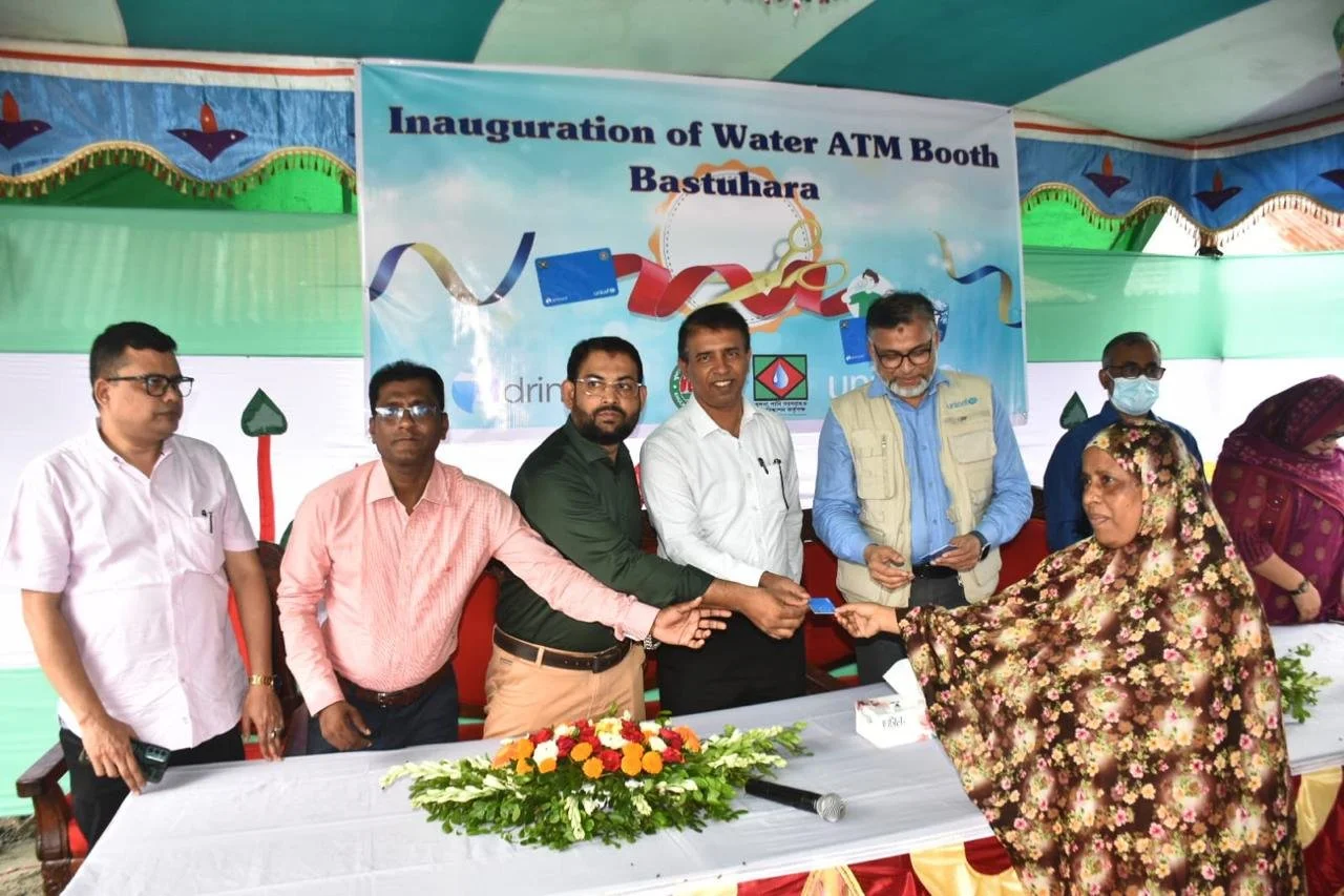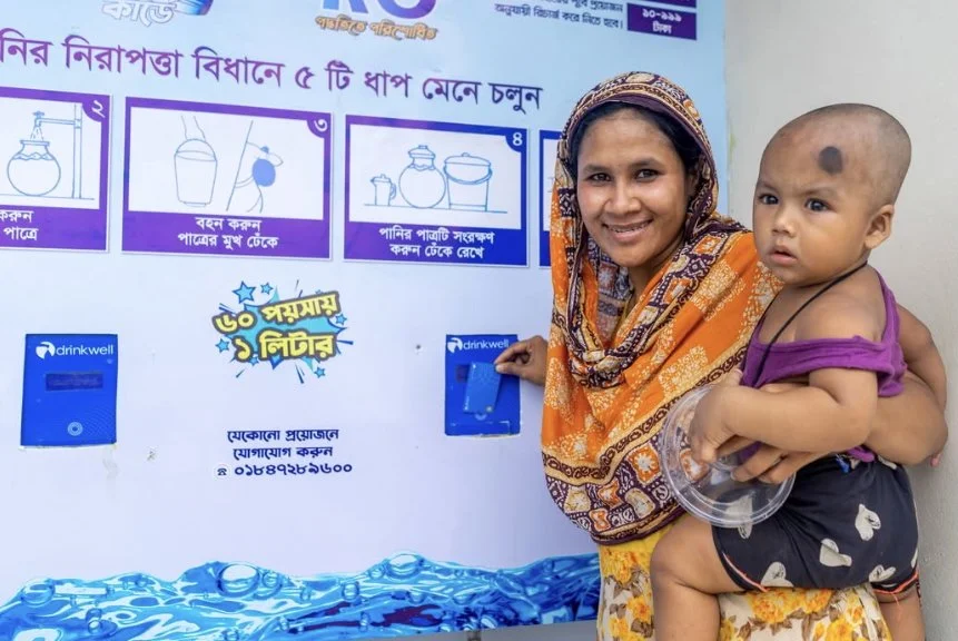 Drinkwell, in partnership with UNICEF Bangladesh, Khulna WASA, and the Khulna City Corporation (KCC), proudly inaugurated two climate-resilient Water ATMs on July 1, 2025—located at Bastuhara Colony Bazar and Rupsha Natun Bazar Char Masjid. In Khulna: